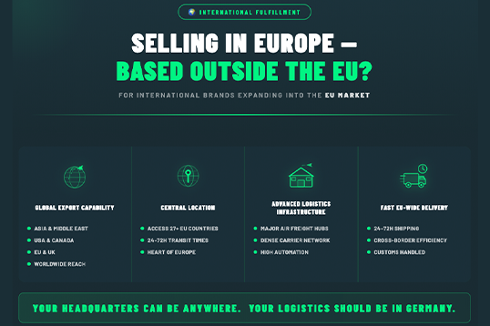 What you really need is a strategic fulfillment hub in Europe that allows you to store products centrally and distribute them efficiently across the EU.